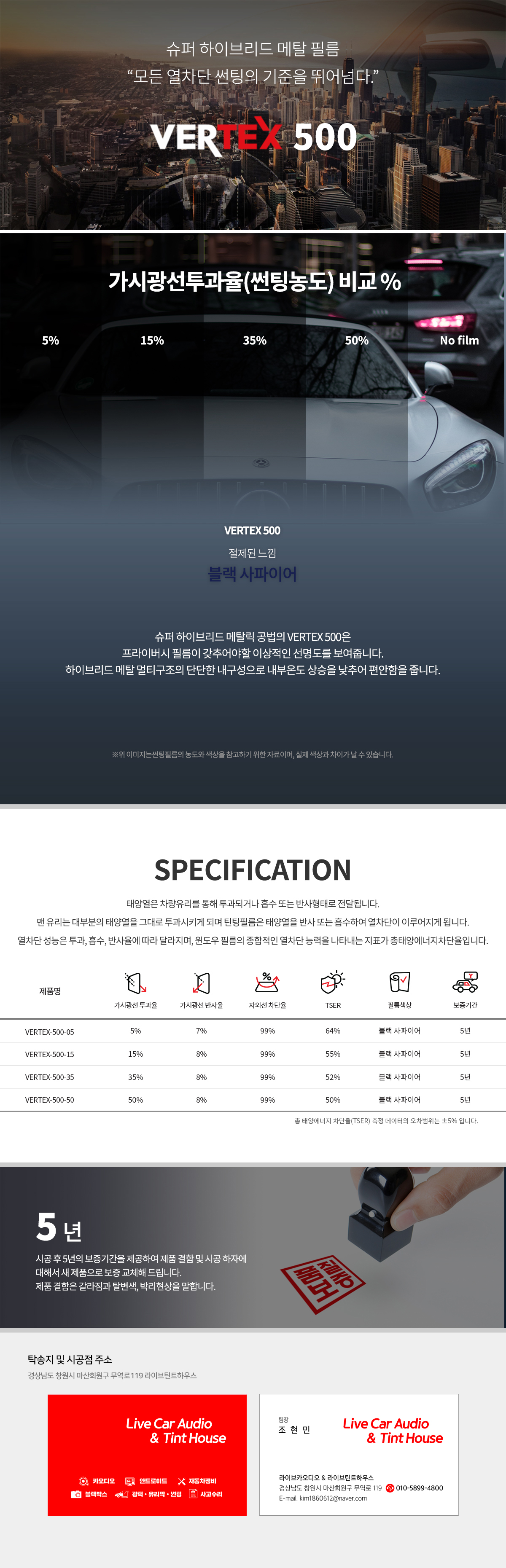 버텍스 전면 500 / 측후면 500 (국산 세단 기준)